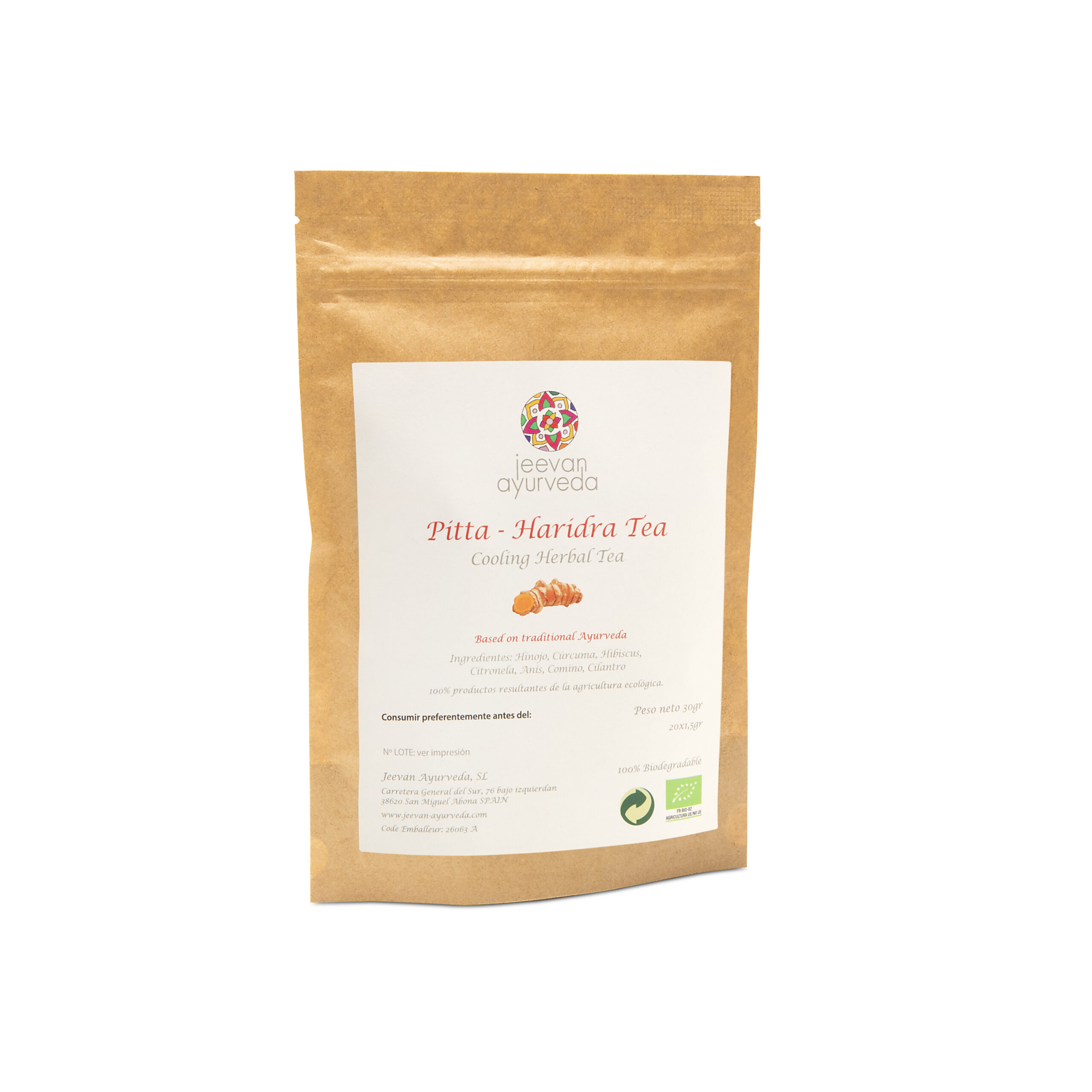 La calidad es el fundamento de la filosofía de Jeevan Ayurveda, junto con el respeto por la Tierra, y las personas que la trabajan. La elección de la agricultura ecológica para nuestras infusiones se impone por la lógica de este respeto. Las infusiones se suministran en bolsitas elaboradas con materias 100% vegetales.