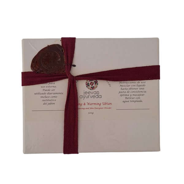 Este cálido Ubtan, ejerce la función de un limpiador profundo, con lo que se utiliza para limpiar y exfoliar tu cuerpo sin privar a la piel de su propia humedad. Además, mejora la circulación de la sangre, suaviza y contribuye a eliminar las irregularidades de la piel, favoreciendo su alisamiento. Da luminosidad, nutriendo a la persona con la inteligencia sutil de la naturaleza. Por su alto contenido en fenogreco, es altamente reafirmante. Está indicado en los procesos de adelgazamiento, retención de líquidos y para mejorar la condición en las últimas fases de la celulitis.
